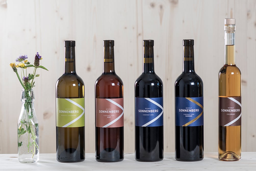 Unser «Sonnenberg Cabernet Jura» ist ein Rotwein mit kräftiger, rubinroter Farbe. Würzige Komponenten werden begleitet von fruchtigen Noten wie Cassis, Brombeeren, Heidelbeeren und Holunder. Ein toller Begleiter zu rotem Fleisch, Wild, Käse und Vegetarischem. Die ideale Genussreife ist 2-5 Jahre nach der Ernte.